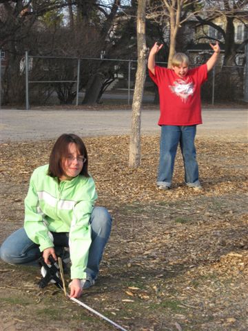 Volunteer Angela Miki is cheered on by student Bjorn Haave. Photo by Trish Elliott.